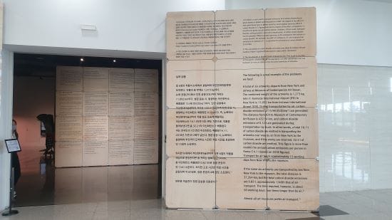 부산현대미술관의 전시 ‘지속 가능한 미술관: 미술과 환경’은 이러한 운송 단계에서의 탄소 배출을 줄이기 위해 해상 운송을 선택합니다.