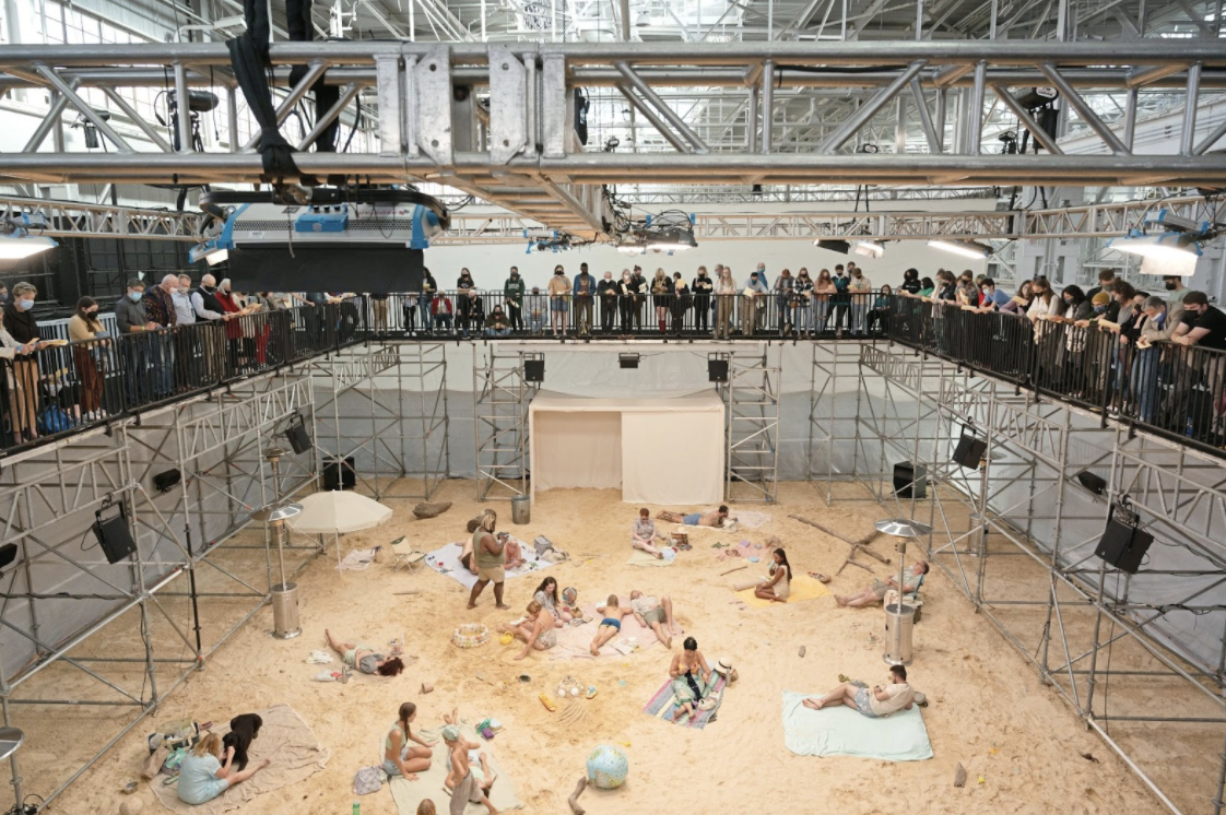 2019년 베니스 비엔날레 리투아니아관은 백색 모래가 덮인 실내 해변으로 변모했습니다. 돗자리를 펴고 선베드에 누운 사람들은 챙이 넓은 모자를 쓰고 스마트폰을 바라보거나 카드 게임을 하고, 강아지를 산책시키거나 책을 읽는 등 평범한 해변의 모습을 있는 그대로 구현했죠. 평화로운 풍경 속 갑자기 한 남자가 오페라를 부르기 시작합니다. 해변을 즐기던 사람들은 “얼음이 다 녹았네”, “휴가도 다 끝나가네”와 같은 가사를 합창합니다. 일상의 사소한 걱정부터 지구의 미래에 대한 막연한 불안까지, 느긋한 선율에 깃든 의미심장한 가사들에 귀를 기울이는 관객들의 이목을 사로잡습니다. 관객들은 이 모든 장면을 해변 위 발코니에서 내려다 보며 지금 이 순간에도 지구의 어느 한 곳에서 일어나고 있을 법한 지독하게도 현실적인 순간들을 마주하게 됩니다.