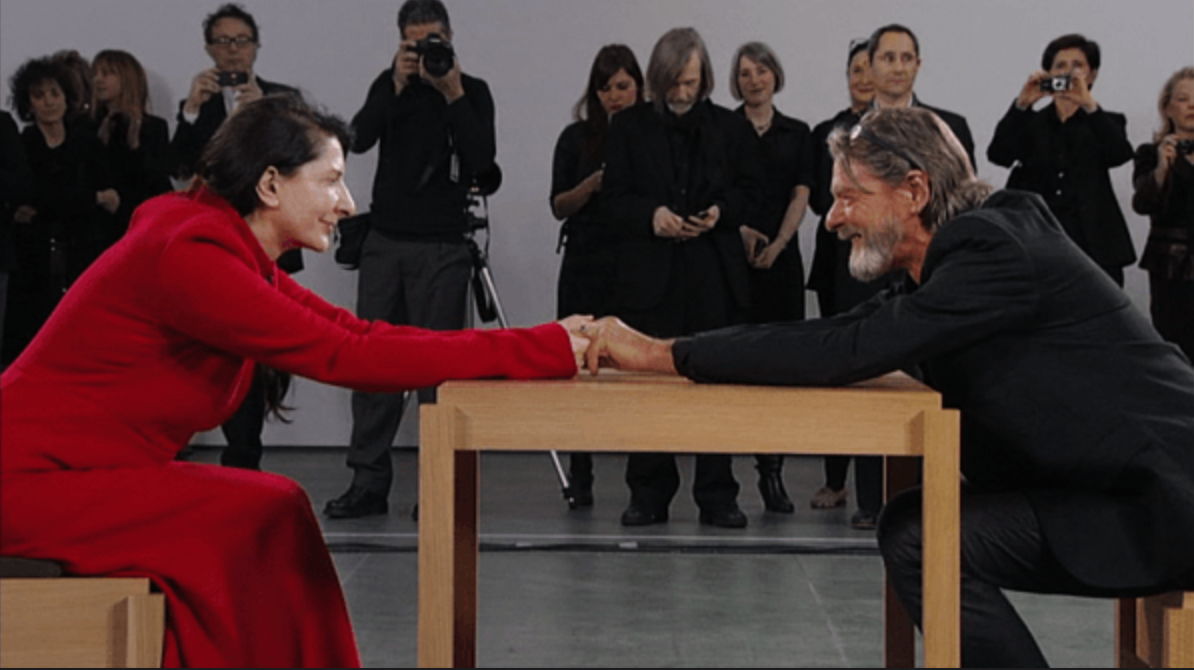 하지만 지나친 동일시는 결국 균열을 가져오곤 합니다. 마리나가 국제적 명성을 얻을수록, 울레이는 그림자에 가려졌고, 둘의 감정과 예술은 서로를 지치게 했고, 마침내 그들은 마지막 퍼포먼스 ‘연인들(The Lovers)'(1988)을 계획합니다. 두 사람은 만리장성 양 끝에서 걷기 시작해, 중간에서 만나 영원한 이별을 고했습니다. 사랑도 예술도 의식적으로 끝맺음한 장면으로 남았죠. 그리고 22년 후, 뉴욕 현대미술관. 마리나는 ‘예술가가 여기 있다(The Artist is Present)’라는 퍼포먼스를 진행 중, 무대에 울레이가 깜짝 등장합니다. 퍼포먼스 속, 둘은 침묵 속에서 눈물을 머금고 마주합니다. 그 순간, 모든 관객은 깨닫게 됩니다. 헤어진 연인도 예술 안에서는 영원한 가족으로 남는다는 것을. 마리나의 회고록에는 이렇게 적혀있었답니다.