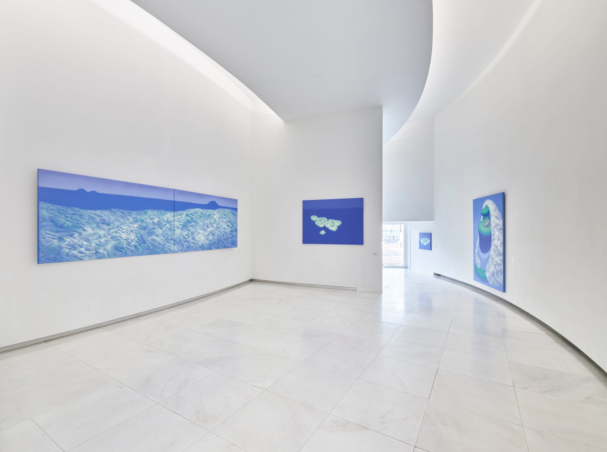 디지털 환경이 우리 삶을 뒤덮은 이후 앰비언트라는 단어는 꽤 친숙한 것이 되었다. ‘주위의’, ‘주변의’라는 뜻을 가진 이 단어는 특정한 분위기를 조성하는 조명이나 음악, 영상 등을 지칭하는 용어로 사용되고 있다. 물리적 제약을 넘어서 언제 어디서나 원하는 시공간으로 이동한 듯한 경험을 주는 앰비언트 음향과 영상은 디지털 시대의 궁극적인 꿈이다. 정유미의 회화 역시 우리를 물리적 시공간 너머의 자유로운 공간으로 데려간다. 아이슬란드와 노르웨이의 드넓은 자연환경을 마주하고 느꼈던 감각을 표현하는 그의 회화는 마치 구름처럼 가벼운 형상과 환상적인 색채를 통해 무한의 이미지를 전달한다. 피부를 스치는 바람과 드넓은 초원의 향기, 끝나지 않을 것처럼 율동하는 능선들까지. 우리가 창밖으로 시선을 돌리면 또 다른 건물만을 볼 수 있는 현실을 피해 디지털 기기의 화면 위 목가적인 브이로그 안으로 시선을 옮기는 것처럼 우리는 갈급하게 정유미의 회화 속 우리가 평소 보지 못했던 드넓은 공간으로 시선을 옮긴다. 그러나 디지털 앰비언트 영상이 외부 세계를 최대한 차단함으로 목가적인 가공의 세계를 제공하는 것과 달리 정유미의 회화는 관람자와 외부 환경 사이의 대화를 단절하지 않는다. 미메시스 뮤지엄의 벽과 창문 너머 외부 환경 사이로 걸린 그의 회화는 관람자들이 지금 발붙이고 있는 현실과 회화가 만들어내는 환상적인 이미지 사이를 자유롭게 오가는 것을 허용한다. 이 때문에 정유미의 회화를 감상할 때는 디지털 앰비언트 영상이나 음악에서 빠져나왔을 때 느끼는 탈력감을 느낄 수 없다. 마치 작가가 직접 노르웨이의 드넓은 자연을 바라보았기 때문에 무한의 이미지를 느낀 것처럼, 우리 역시 몸으로 회화를 직접 바라보고 있을 때만 완전한 몰입의 자유를 느낄 수 있다. 시선을 돌리는 순간, 우리는 회화가 놓인 실제 환경을 자각하고 숨을 돌린 후 또 다른 자유로운 풍경을 찾기 위해 그의 다른 작업을 따라 전시장 안을 자유롭게 오간다.