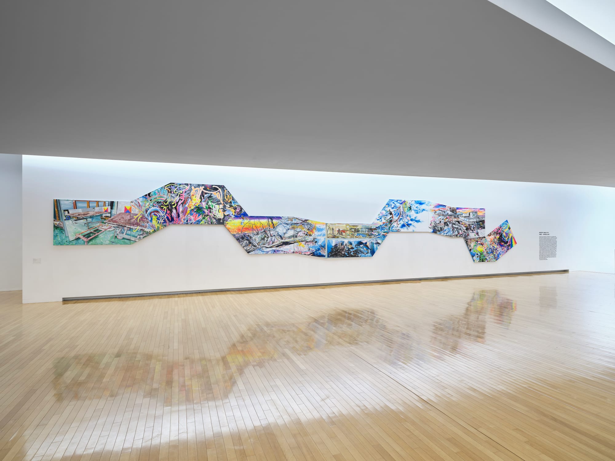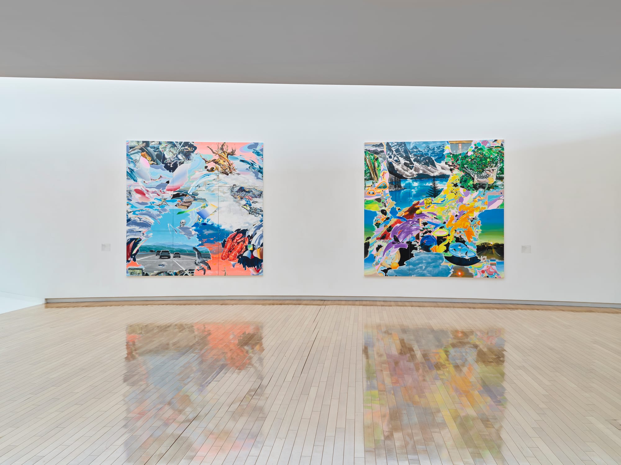 신준민의 회화가 발광하는 이미지에 대한 동시대적 경험을 회화로 옮겨 이를 회화만의 방식으로 변형한다면, 이세준의 회화는 새롭게 합성되고 조합될 수 있는 디지털 이미지의 특성을 회화 속으로 가져온다. 마치 포토샵을 통해 붙여지고 기워지는 디지털 이미지처럼, 이세준의 화면 안을 채운 다양한 이미지들은 기묘한 방식으로 서로와 영역을 공유하고 있다. 회화를 채우고 있는 이미지의 출처와 시점이 너무나 다양하기 때문에 이들 사이의 단일한 서사를 찾아내려는 시도는 결국 좌절된다. 마치 디지털 이미지가 무수히 많은 사람들에게 공유되며 새로운 서사로 덧씌워지는 것처럼, 밈이 퍼지면서 점차 다른 이미지와 서사가 덧붙는 것처럼. 특히 「스페이스 아케이드」(2018~2023)는 다양한 시간대에 그려진 여러 작품 사이로 작가가 이들을 잇는 회화를 또 그려 연결한 것으로 논리적인 구성을 거부하는 디지털 이미지의 세계를 떠올리게 한다. 복사 붙여넣기가 자유롭게 이루어지는 디지털상에서 이미지의 출처와 기원은 더 이상 중요한 것이 아니게 되었다. 우리가 일상적으로 경험하는 이미지들은 이제 원본에서 풀려나 0과 1로 처리되며 지속적으로 변형되고, 풍화되고, 덧붙으며 또 다른 서사를 구축한다. 이세준의 회화 역시 이들과 마찬가지로 시간에 따라 새로운 이미지가 덧붙으며 원본이 사라진 세계를 만들어 낸다. 그러나 그의 회화가 결정적으로 디지털 이미지와 궤를 달리하는 지점은 이들이 관람자들에게 공유되는 방식에 있다. 디지털 이미지는 대체로 우리를 움직이게 하지 않는다. 이들은 신체가 움직이는 시간을 최소화한다. 이미지 자체는 이전에 없던 방식과 속도로 빠르게 이동하며 확산하지만, 이미지를 소비하는 우리가 이들을 따라 움직이는 일은 거의 없다. 그저 내 눈앞에 있는 화면에서 네 눈앞의 화면으로 전송될 뿐이다. 그러나 넓은 벽면을 거대하게 차지하는 이세준의 회화는 가변적으로 변화하고 덧붙는 이미지의 흐름을 따라 우리를 움직이게 한다. 이미지와 함께 움직이는 몸과 그에 따른 실제 시간에 대한 경험이 그의 ‘회화’를 디지털 이미지와는 본질적으로 다른 것으로 만든다.