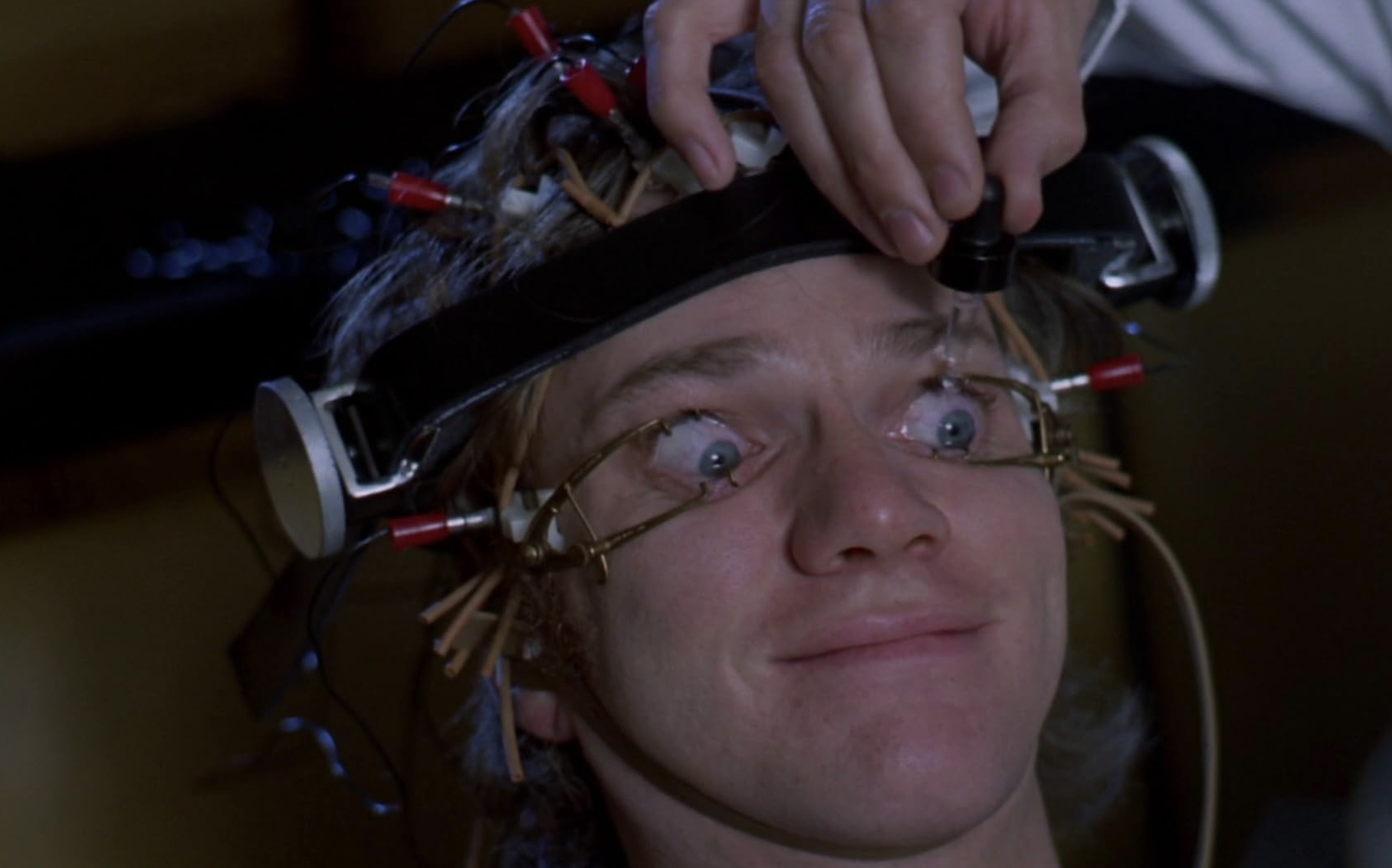 폭력의 미학화는 베토벤 교향곡 9번으로 절정에 치닫기도 합니다. 베토벤 교향곡 9번을 열렬히 사랑하는 알렉스는 상상 속에서 폭력, 전쟁, 왜곡된 성적 판타지를 연상시킵니다. ‘고전음악 = 고상함’이라는 등식에 대한 완벽한 비틀기입니다. 이 음악은 루도비코 갱생 프로그램에서 고문 영상과 병치되며 숭고함과는 전혀 다른 의미를 띠게 됩니다. 고문 기계에 머리를 고정당한 채 폭력적인 이미지들을 강제로 시청하며 구토감을 느끼는 동안 베토벤 교향곡 9번 4악장이 흐르는 것. 눈으로 보는 폭력과 귀로 느끼는 숭고함 사이의 간극은 기이함을 낳습니다. 결국 이 장치는 알렉스가 가장 사랑하던 음악이 고문 도구로 전락하면서, 그의 정체성과 자유의지를 완전히 박탈당하는 효과를 만들어냅니다.