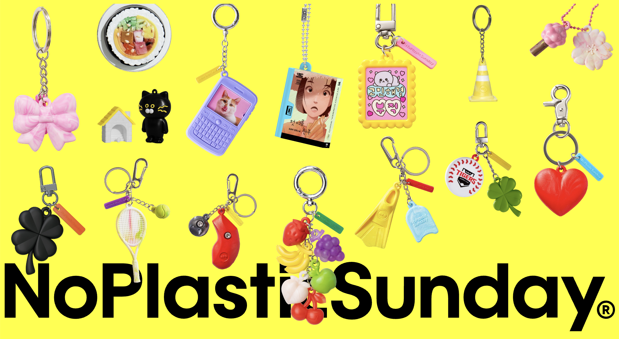일회용 세상에 ‘플라스틱의 윤회’를 외치다! 노플라스틱선데이는 플라스틱 업사이클링계의 선두 주자로서, 나날이 돋보이는 행보를 보여주고 있습니다. 지난 4월 2025 서울국제불교박람회에선 업사이클이란 말 대신 ‘윤회’라는 재치 넘치는 표현을 곁들여 붓다 키링, 플라스틱 염주 등을 홍보해 눈길을 끌었어요. 최근엔 스마트폰에 태그하면 콘텐츠가 나타나는 NFC 제품을 앞세워 다양한 컬래버 굿즈를 출시하는 중인데요. KBO 럭키 야구 키링, 크리스피크림 도넛 키링, 김밥 크리에이터와 함께 만든 김밥톡 등 참을 수 없는 귀여움과 높은 완성도로 소비자를 무해한 소비로 이끌고 있습니다. 세상 가장 힙하게 지구를 지키는 이 브랜드라면 지갑을 열어도 아깝지 않아요.