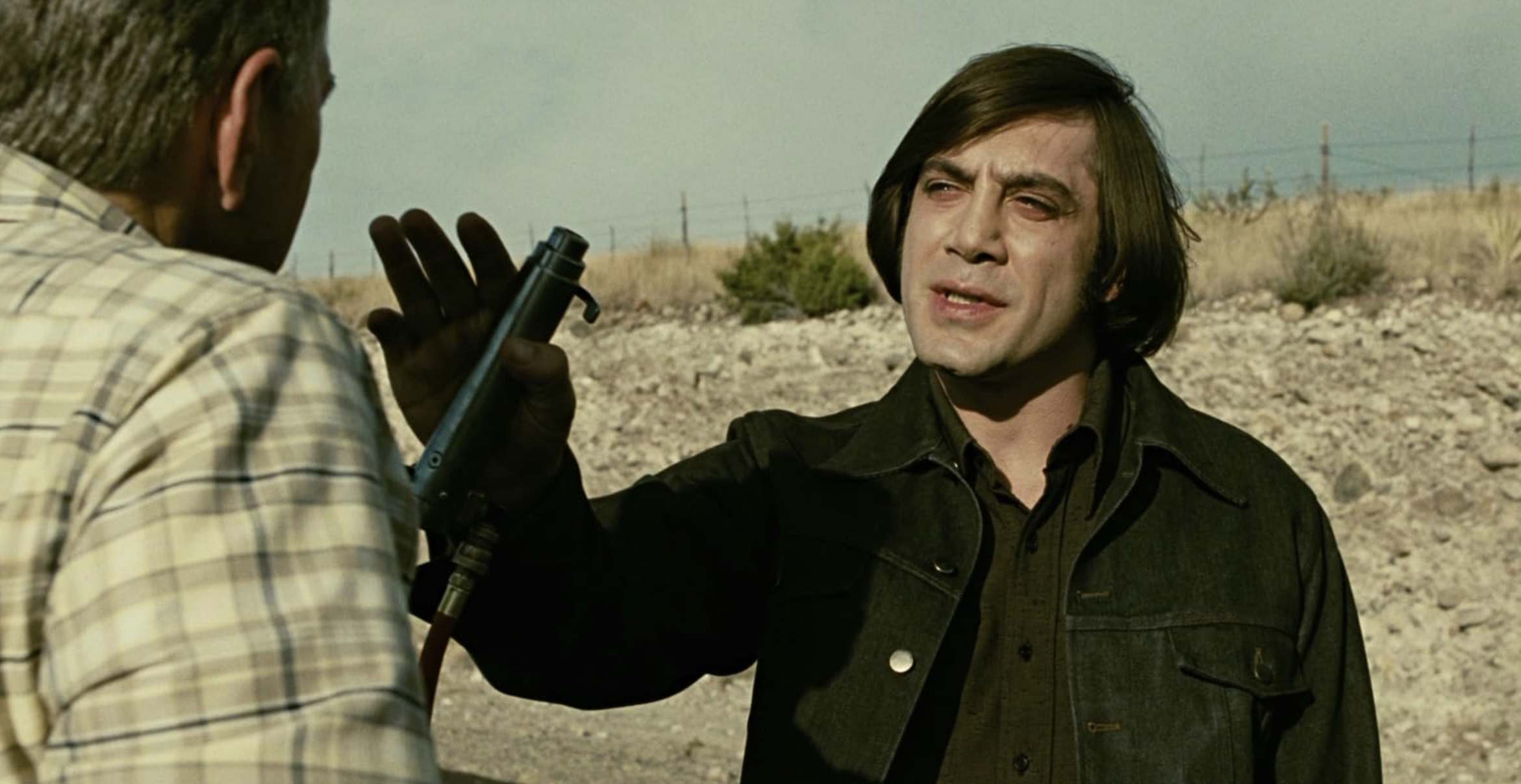 인간의 무력감이 극대화되는 시퀀스는 단연 동전 던지기. 이 장면에서 시거는 주유소 주인에게 동전을 튕기며 앞뒤를 맞혀 보라고 강요합니다. 삶과 죽음의 무게를 25센트짜리 금속에 맡겨야 하는 상황입니다. 코엔 형제는 우연(확률)을 통해 결정(숙명)을 들이밀어 공포를 주입합니다. 균형은 ‘인간의 의지’ 대신 ‘이미 길 위를 22년 굴러온 동전’ 같은 맹목적 시간성에 삼켜지는 것입니다. 한편 돈가방을 훔친 탓에 시거의 표적이 된 사냥꾼 모스는 생존 본능과 윤리 의식 사이에서 줄타기를 시도하지만, 모텔 총격전과 사막 추격전 끝에 비극적으로 퇴장합니다. 화면 밖에서 처분되는 그의 죽음은 “설명조차 의미 없다”는 무관심의 폭력을 강조하죠.