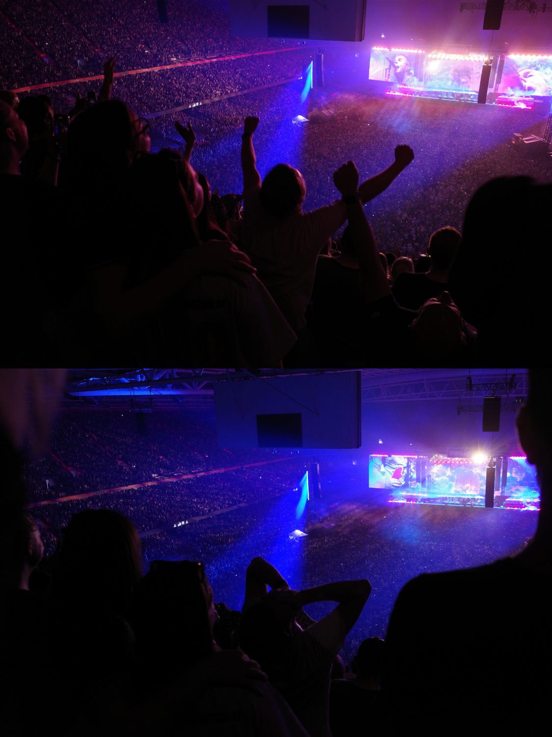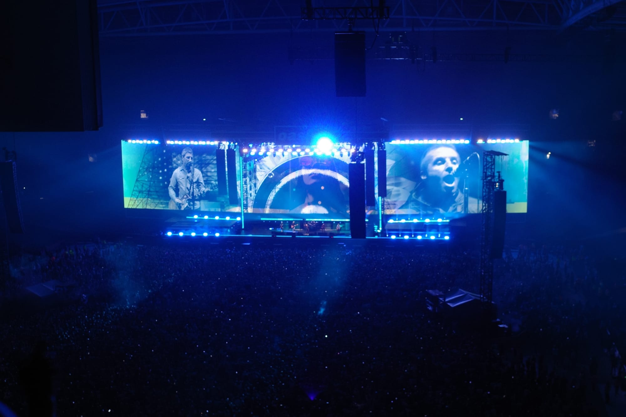 공연 시간이 임박한 가운데 전광판엔 마침내 영상이 띄워졌습니다. 카운트다운과 함께 무대엔 갤러거 형제가 등장, Hello로 무대를 시작했습니다. ‘Hello! Hello! It’s good to be back’이란 가사는 마치 이날을 예언한 것만 같았어요. 이날 이들은 20곡이 넘는 곡을 소화했는데요. 무엇보다 특별했던 건 이들이 셋리스트의 대부분을 1~3집 곡으로 채워 향수를 제대로 불러일으켰단 사실이었습니다. 주변 관객은 대부분 오아시스의 전성기를 함께 한 듯한 연령대로, 특히나 감격에 겨워하는 것이 느껴졌는데요. 1994년도에 태어나 초등학교 고학년 때부터 오아시스를 듣고, 중학교 때 해체 소식을 접했던 ‘아기 팬’으로서 그들의 감정선을 온전히 따라잡기엔 한계가 있겠단 생각이 들기도 했습니다.