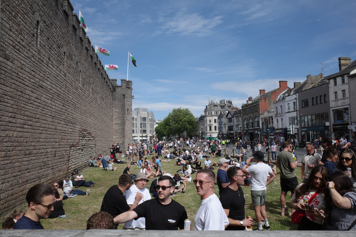 한국에선 주말이 아니고서야 퇴근 후 콘서트에 부랴부랴 참석하는 게 일반적이잖아요. 이날 영국인 중 일부는 아마 그랬겠지만, 같은 공연을 보게 될 7만 명 중 대부분은 이미 그들만의 공연을 맞이한 것 같았어요. 대낮부터 펍은 사람들로 붐볐고 웨일스 성 근처 잔디밭 또한 무리로 점령되어 있었죠. 오아시스란 대체 이들에게 무엇이길래 온 거리가 이토록 신난 것일까, 이들의 영향력을 실감했습니다. 곳곳에서 취재진 또한 흔히 볼 수 있었는데요. 아무래도 동양인이 흔하지는 않았던 탓인지, 영국의 한 스포츠 매체와 짧은 인터뷰도 진행했습니다. 서툰 영어로나마 오아시스를 위해 한국에서 왔다며 기대되는 곡을 이야기했는데 끝나고 나니 남는 건 부끄러움뿐. (만약 여러분께서 해외 공연 관람을 준비하고 계신다면 미리 인터뷰 준비를 해두실 것을 강력히 권합니다. 그것이 흑역사를 막는 길이랍니다.)