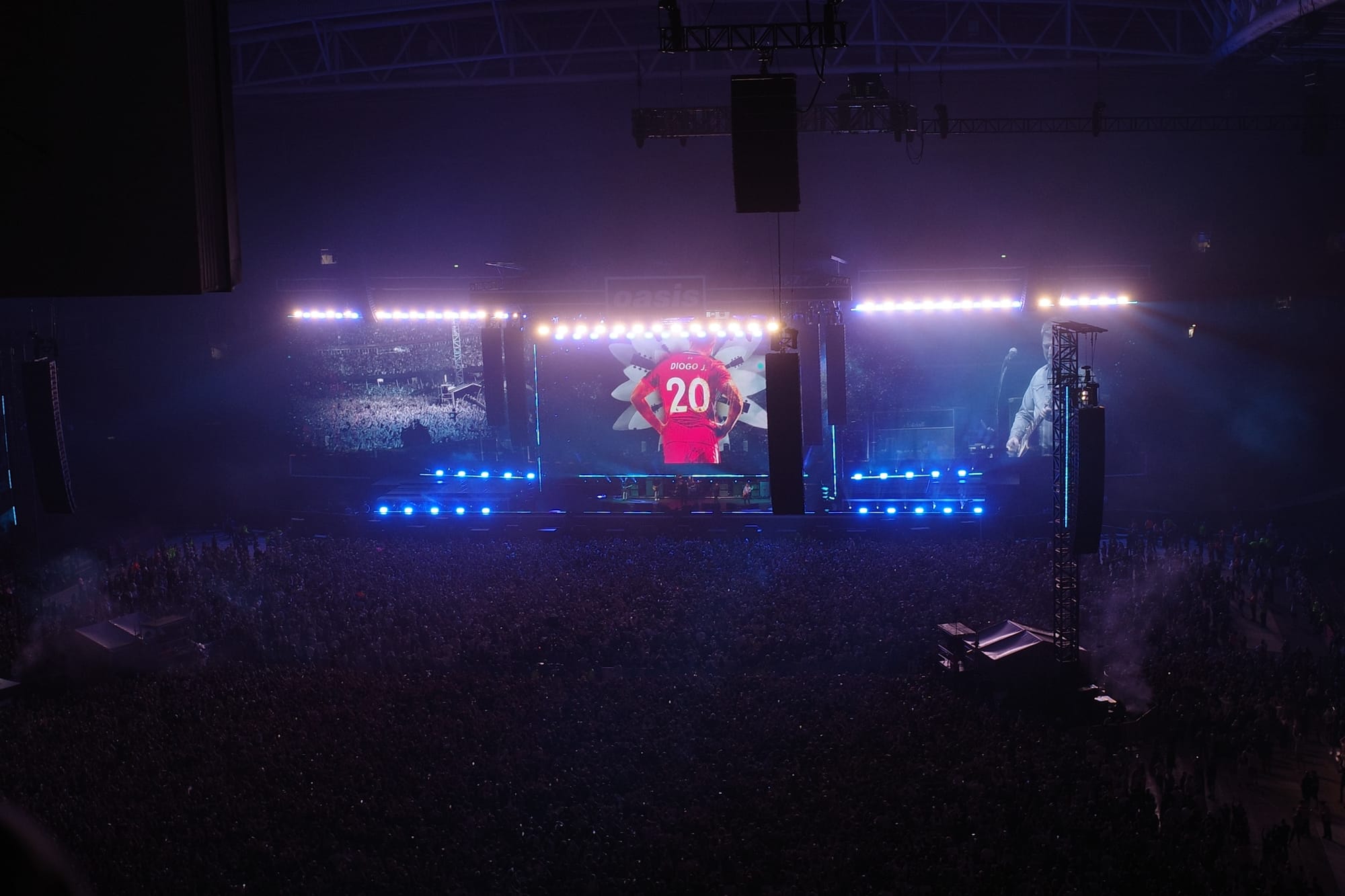 공연은 점점 막바지로 치닫는데, 아직 대표곡이 나오지 않아 기대감이 증폭되던 참이었습니다. 그런데 ‘Rock’N’ Roll Star’를 앞두고 리암이 “이게 우리의 마지막 곡이야”라고 말하는 것 아니겠어요. 의아함을 뒤로 하고 일단 노래를 즐겼는데 정말로 둘이 퇴장하길래 사람들과 한마음으로 소리를 지르며 재등장을 염원했습니다. 곧이어 ‘The Masterplan’ 전주로 그들이 다시 무대에 오르자 스타디움은 함성으로 다시 가득 찼습니다. 이후엔 드디어 모두가 기다린 그 곡들, ‘Don’t Look Back In Anger’와 ‘Wonderwall’, ‘Champagne Supernova’가 연이어 등장했고요.