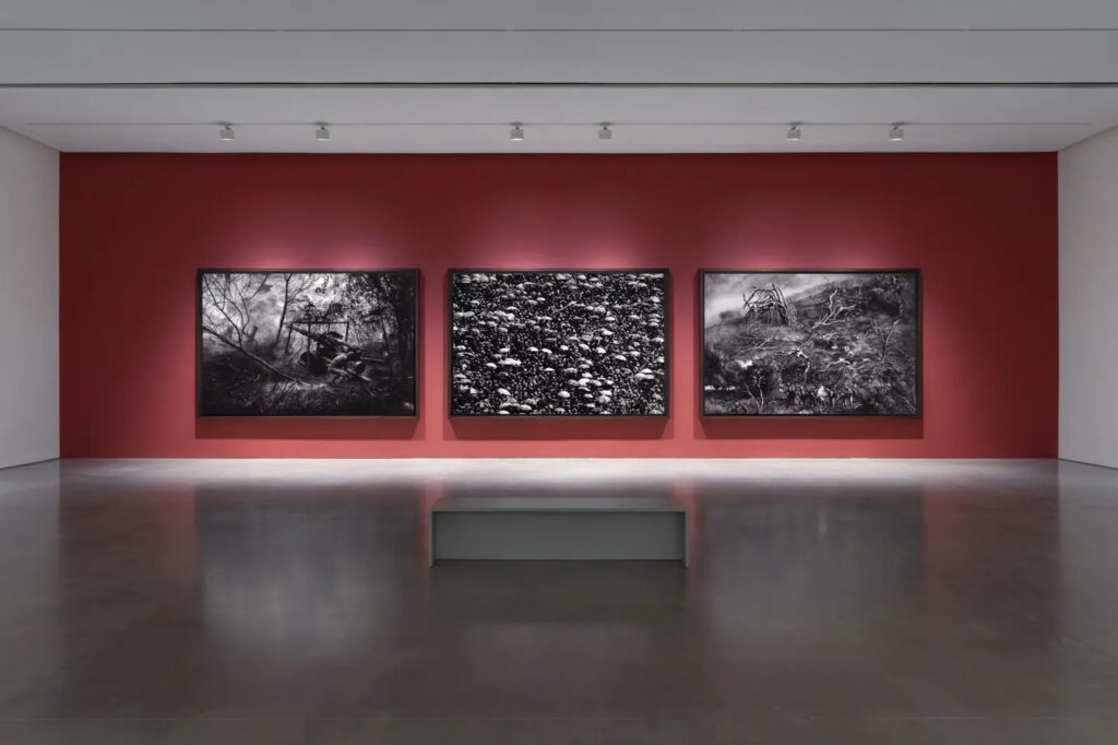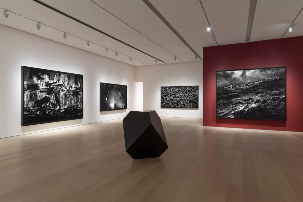 가장 먼저 향한 페이스 갤러리는 마침 65주년을 축하하고 있었습니다. 건물 전체가 갤러리인 그곳에서는 로버트 롱고(Robert Longo)의 전시 « The Weight of Hope »가 펼쳐지고 있었습니다. 뉴욕에서 태어난 롱고는 목탄 드로잉, 조각, 영상 등 다양한 매체로 사회, 정치적 사건을 표현합니다. 특히 눈에 띈 것은 시위와 전쟁, 폭력의 현장을 다룬 작품들이었습니다. 흑인 인권 운동인 BLM(Black Lives Matter)부터 북한 군대의 모습까지 다양한 사회 속 급박한 현장이 흑백 작품 속에 남아있었습니다.