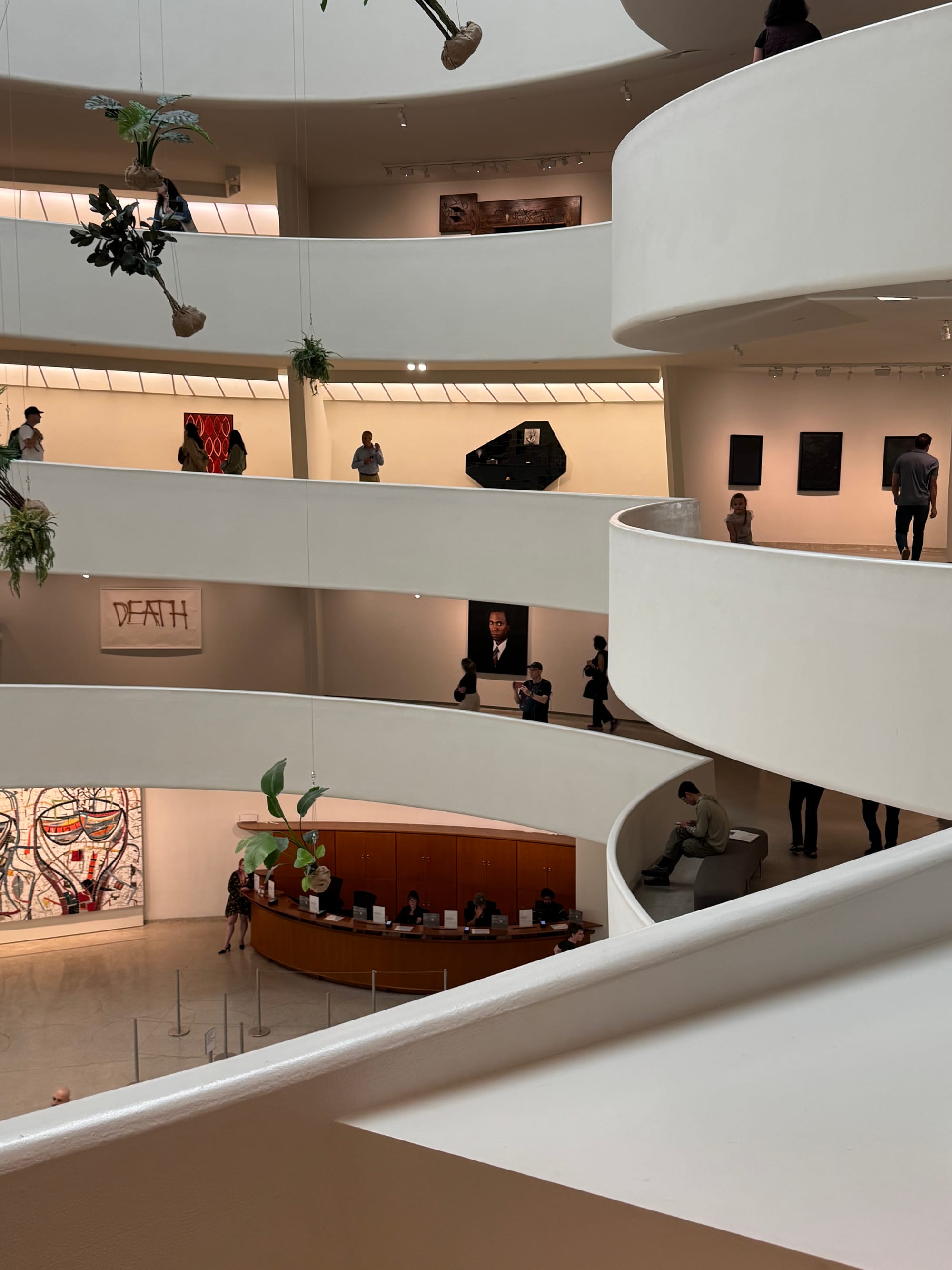 센트럴 파크를 따라 걷다 보니 미술 수업이나 책에서 수없이 보았던 구겐하임 미술관이 모습을 드러냈습니다. 동그란 원형 복도를 따라 5층부터 1층까지 작품을 관람하는 그 경험이 참 궁금했습니다. 그곳에선 시카고 출생의 흑인 예술가 라시드 존슨(Rashid Johnson)의 전시 « A Poem for Deep Thinkers »가 펼쳐지고 있었습니다. 전시장은 회화, 조각, 영상 등 90점이 넘는 존슨의 작품으로 가득했습니다. 재료 또한 검은색 비누부터 시어버터, 페인트 등 다채로워서 다양한 탐구를 지속하는 작가로 느껴졌습니다. 이처럼 폭넓은 작품들은 흑인의 정체성, 고유한 문화, 여전히 남아 있는 인종 차별에 대한 표현이었습니다.