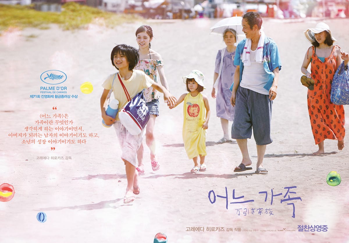 도쿄의 허름한 단칸방에는 ‘가짜 가족’이 함께 살고 있습니다. 옆자리 파친코 구슬을 슬쩍하는 할머니 하츠메, 일용직 일을 하며 좀도둑질을 일삼는 아버지 오사무, 세탁소에서 손님의 옷을 뒤지는 어머니 노부요, 유흥업소에서 일하는 동생 아키, 그리고 아버지에게 도둑질을 배우는 아들 쇼타. 이들은 돈과 돌봄이라는 필요에 의해 가족의 역할을 나누어 살아갑니다. 어느 날, 부모에게 학대받던 소녀 유리를 발견한 이들은 아이를 집으로 데려와 린이라는 새 이름을 지어주고 함께 지내기 시작합니다. 린은 가족에게 받은 상처를 이 ‘가짜 가족’의 따뜻한 정으로 서서히 덮어갑니다. 바다를 한 번도 본 적 없다는 린을 위해 가족 모두가 여행을 떠나 행복한 시간을 보내지만 이후 쇼타의 절도 행위가 발각되면서 상황은 급변합니다.