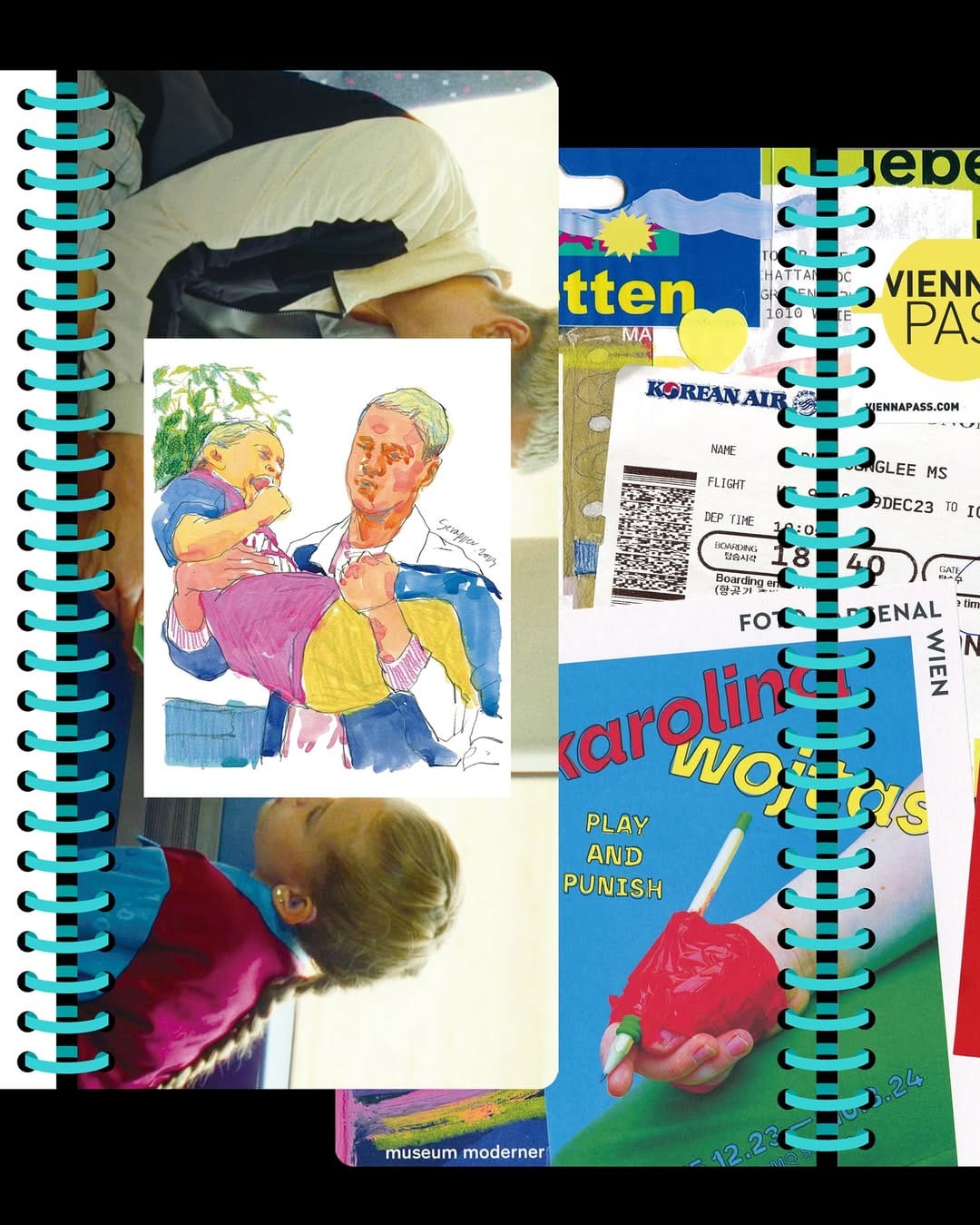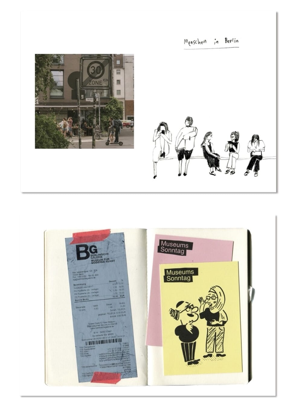 책 『The pieces of memory – Berlin』은 ‘기억의 조각들’이라는 이름 그대로 베를린에서 한 달간 채집한 풍경이 담겨 있습니다. 작업 노트를 스캔한 페이지부터 폴라로이드 사진, 연필 드로잉, 수채화, 엽서와 영수증까지. 페이지를 넘기다 보면 왜 이 책이 사진집이나 드로잉북이 아닌 이미지북으로 소개되는지 알 수 있습니다. 크라프트 재질의 표지 위에 폴라로이드 스티커를 붙이고, 직접 찢어 붙인 마스킹 테이프 위에 도시 이름을 적는 순간 비로소 책은 완성되는데요. 책등을 종이로 감싸지 않고 노출한 제본 방식은 빈티지한 매력을 더합니다. 여행을 기록하는 일러스트레이터의 시선이 오롯이 담긴, 두툼한 스크랩북처럼 영감으로 풍성한 책입니다.