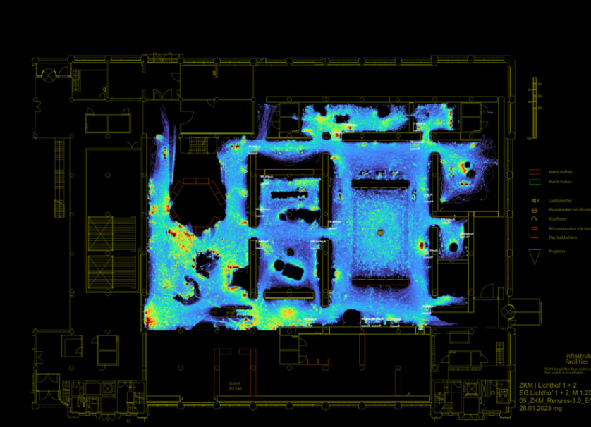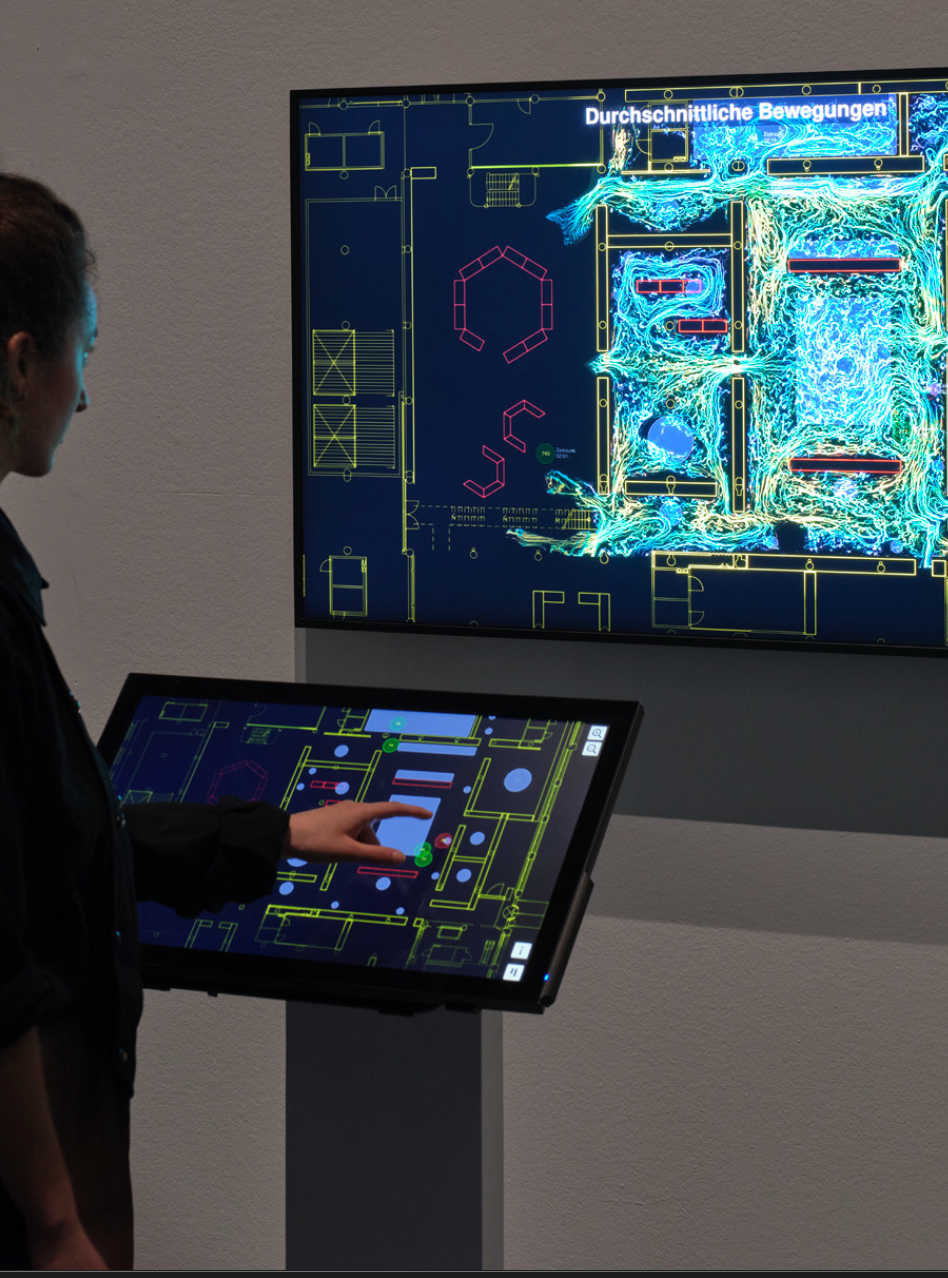 <intelligent.museum> 프로젝트는 이러한 상황을 실제로 구현합니다. LiDAR 기반 시스템은 관람객의 위치와 이동 경로를 익명 데이터로 수집해, 전시 공간 안에서 어떤 행동이 반복되는지를 보여줍니다. 중요한 것은 기술 그 자체가 아니라, 이 데이터가 전시에 다시 반영될 수 있다는 사실입니다. 전시는 관람자를 관찰하고, 그 관람 행위를 기준 삼아 스스로를 닮아갑니다.