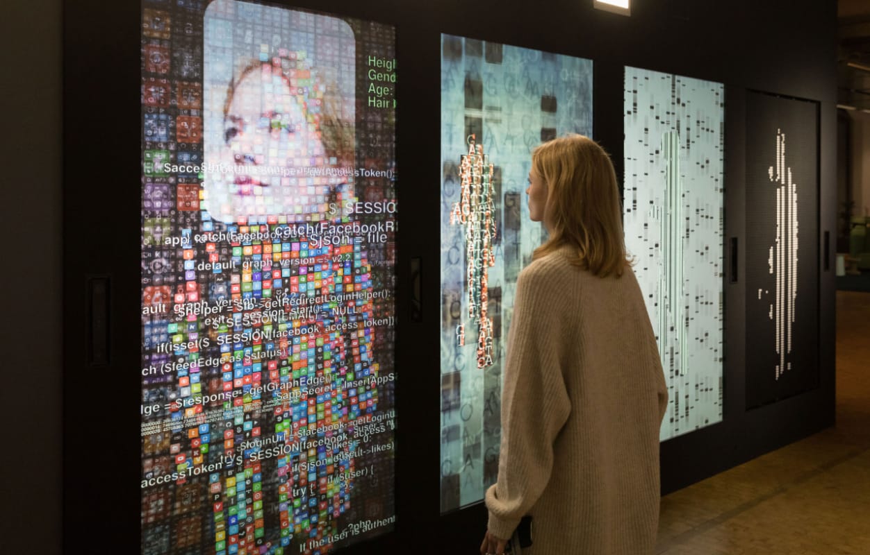 <intelligent.museum> 은 자연어 처리(NLP)를 활용한 다국어 인식 정보 패널을 통해 이 간극을 드러냅니다. 이 시스템은 전시장 안에서 관람객이 사용하는 언어를 자동으로 인식하고, 작품 설명을 해당 언어로 즉시 변환해 제공합니다. 2021년 ZKM 전시 <BioMedien>에서 처음 테스트되었으며, 현재는 100개 이상의 언어를 인식할 수 있습니다. 그러나 이 기술은 이미 큐레이터가 작성한 텍스트를 언어적으로만 모방해 전달할 뿐, 어떤 정보가 더 중요하거나 보충되어야 하는지는 판단하지 않습니다.
