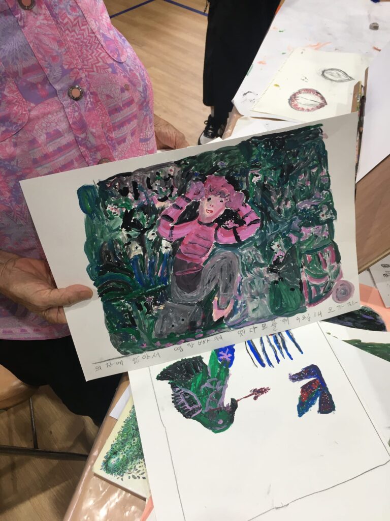 할망들은 이제 틈만 나면 마을 체육관에 모여 그림을 그립니다. 모두 모이면 최소연 미술 선생님의 특별한 수업이 시작됩니다. 우리에게 익숙한 전문적인 화실 수업과는 사뭇 다른 건, 할머니들이 받는 수업은 전문적인 그림 스킬을 연마하기 위한 목적이 없다는 것입니다. 도움을 요청하더라도 선생님은 말로만 방향을 제시할 뿐 직접 붓을 들어주지는 않습니다. 그럴 때마다 할머니들은 장난스레 “우리 선생님은 도와주지 않는다”며 서운해하시기도 하지만, 최소연 선생님은 그런 할머니들을 보며 이렇게 말합니다.