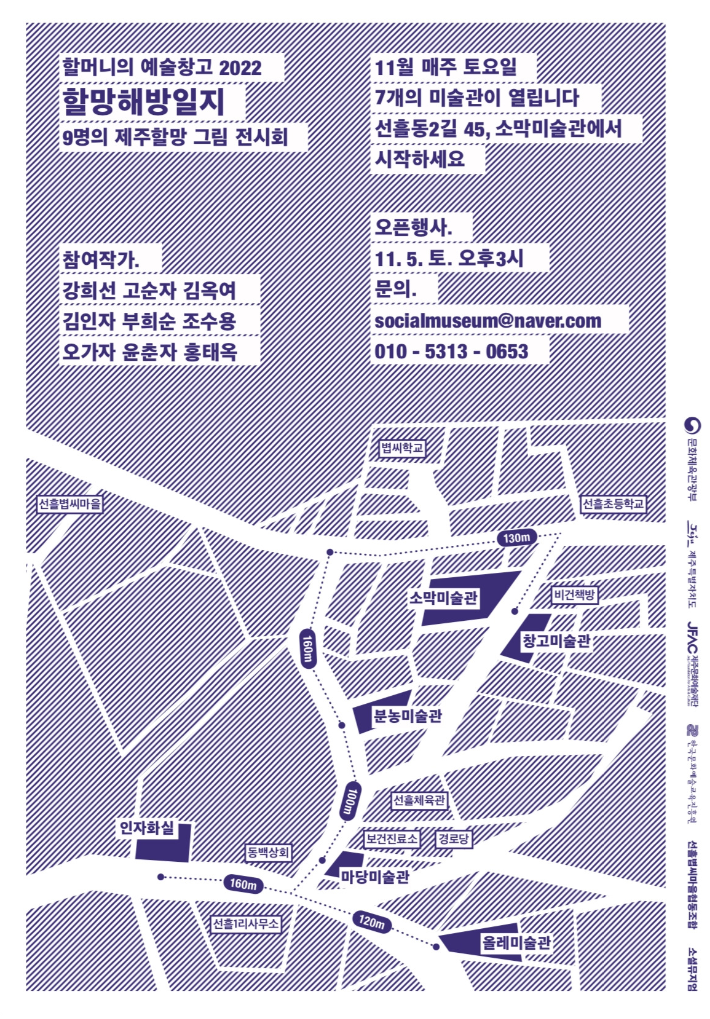소셜뮤지엄은 제주라는 독특한 지역성과 깊은 역사의 맥락 속에서, 할머니들의 삶과 예술이 만나 깊은 치유와 새로운 희망을 꽃피운 지역문화예술 공동체입니다. 평생을 고단한 노동으로 살아온 할머니들은 그림을 통해 억눌렸던 상처를 보듬고 자아를 찾아가는 과정을 생생하게 보여줍니다. 그림을 그린다는 행위 자체로 삶에서 해방이 되었다는 할머니들이기에, 진정 어린 그림을 보며 관람객들은 눈물을 흘리기 일쑤입니다.
