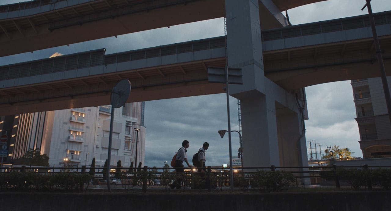 근미래의 도쿄를 배경으로 하는 영화 <해피엔드>의 주인공 고등학생 유타와 코우를 포함한 다섯 친구는 클럽 음악을 즐기는 음악 연구 동아리원입니다. 이들은 출입이 막히는 밤에 몰래 동아리방에 들어가 음악을 틀고 노는 등 자유로운 시간을 즐기죠. 어느 밤 이들은 교장의 차량에 장난을 치고, 이후 도입된 학교의 AI 감시 체제와 이에 적극 대응하는 후미의 등장은 다섯 친구의 관계에 균열을 냅니다. 후미의 모습에 큰 영향을 받은 코우는 세상에 저항하는 법을 배우며 유타를 한심하게 보기 시작하고, 그 생각을 망설임 없이 드러내요. 그런 코우를 바라보는 유타는 그저 전처럼 같이 놀고 싶을 뿐입니다. 그러나 이미 변화한 코우를 붙잡기란 어려운 일이죠. 영화는 관계의 위기를 지진, 다리 떨기 등 흔들리는 화면으로 보여줍니다. 그리고 격동하는 시절을 겪어낸 이들의 졸업식으로 마무리합니다. 졸업식에서 서로를 캠코더로 담고, 늘 함께 걷던 육교에서 인사하죠.