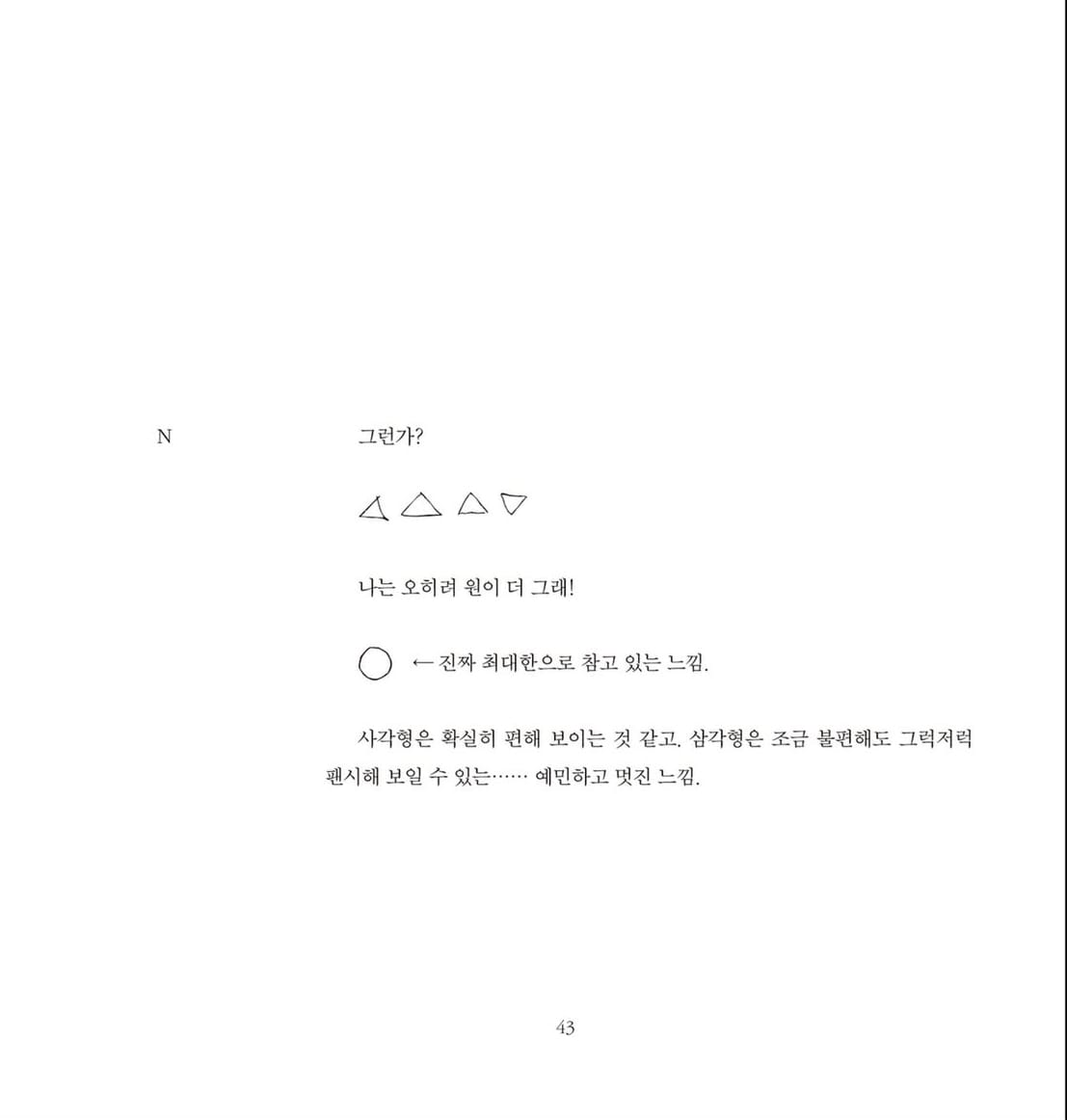 결말을 향해 나아가는 서사가 아니라, 대화와 사유의 흐름 자체로 이루어진 이 책은 형식 밖에서 텍스트가 어떻게 구성될 수 있는지를 보여주는 하나의 사례입니다. 정해진 틀 없이 이어지는 필담은 텍스트가 반드시 완결을 향하지 않아도 충분히 밀도 있는 세계를 만들 수 있음을 조용히 증명합니다.