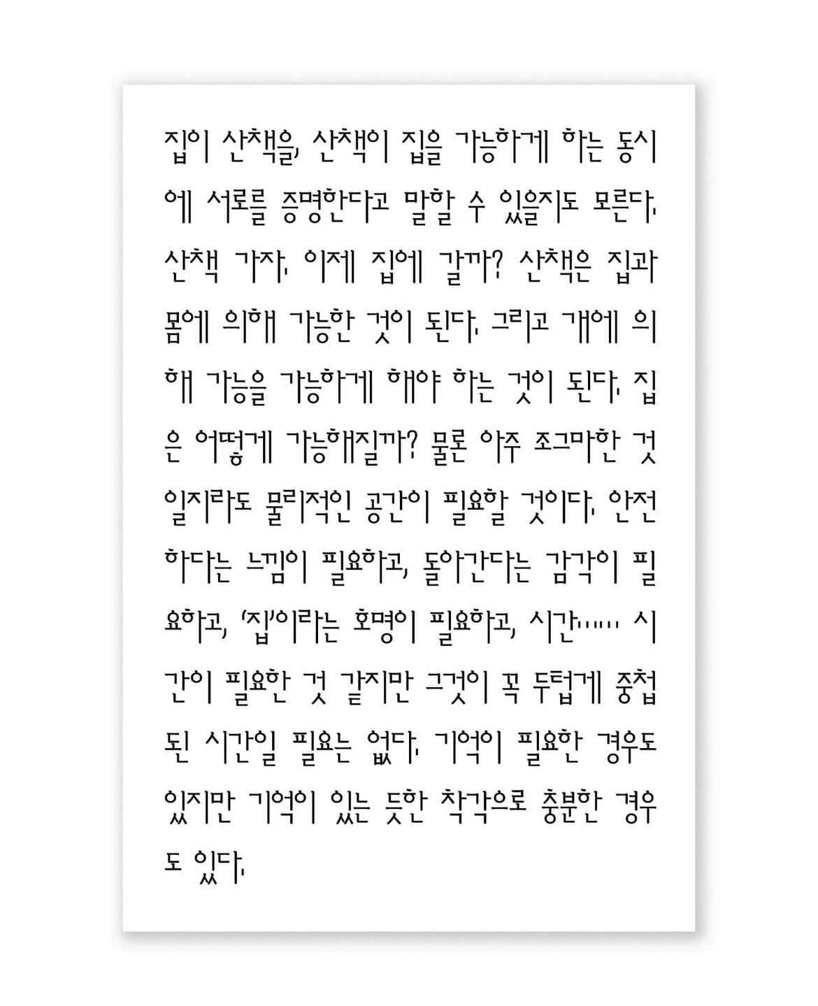 완결된 글보다 열려 있는 문장은 더 자유롭게 확장됩니다. 독자의 시선이 닿는 곳마다 새로운 의미가 생겨나고, 그 의미들은 다시 다음 문장을 만들어냅니다. 그렇게 열린 문장들 사이에서 우리는 새로운 읽기와 사유의 가능성을 발견하게 되고, 그 가능성들이 모일 때 텍스트는 기존의 세계 밖으로 한 걸음 더 나아갑니다.