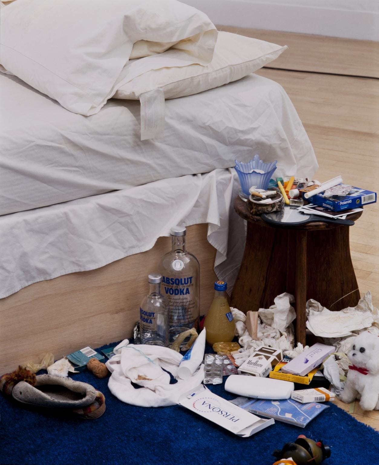 흰 벽의 넓은 방에 침대 하나가 놓여 있습니다. 방금이라도 누군가 누워 한참을 뒤척이다 일어난 것처럼 흐트러진 이불 위에는 벗어던진 스타킹과 속옷이 널부러져 있고, 침대 맡에는 담배와 빈 보드카 병과 같은 쓰레기들이 굴러다닙니다. 침대의 주인은 트레이시 에민(Tracey Emin), 1990년대 영국 젊은 예술가들을 일컫는 YBA(Young British Artists)를 대표하는 작가 중 한 명입니다. 데미안 허스트와 같이 찰스 사치의 후원을 받았고, 설치, 사진, 영상, 그림, 조각 등 다양하고 활발한 작품 활동을 하고 있죠.