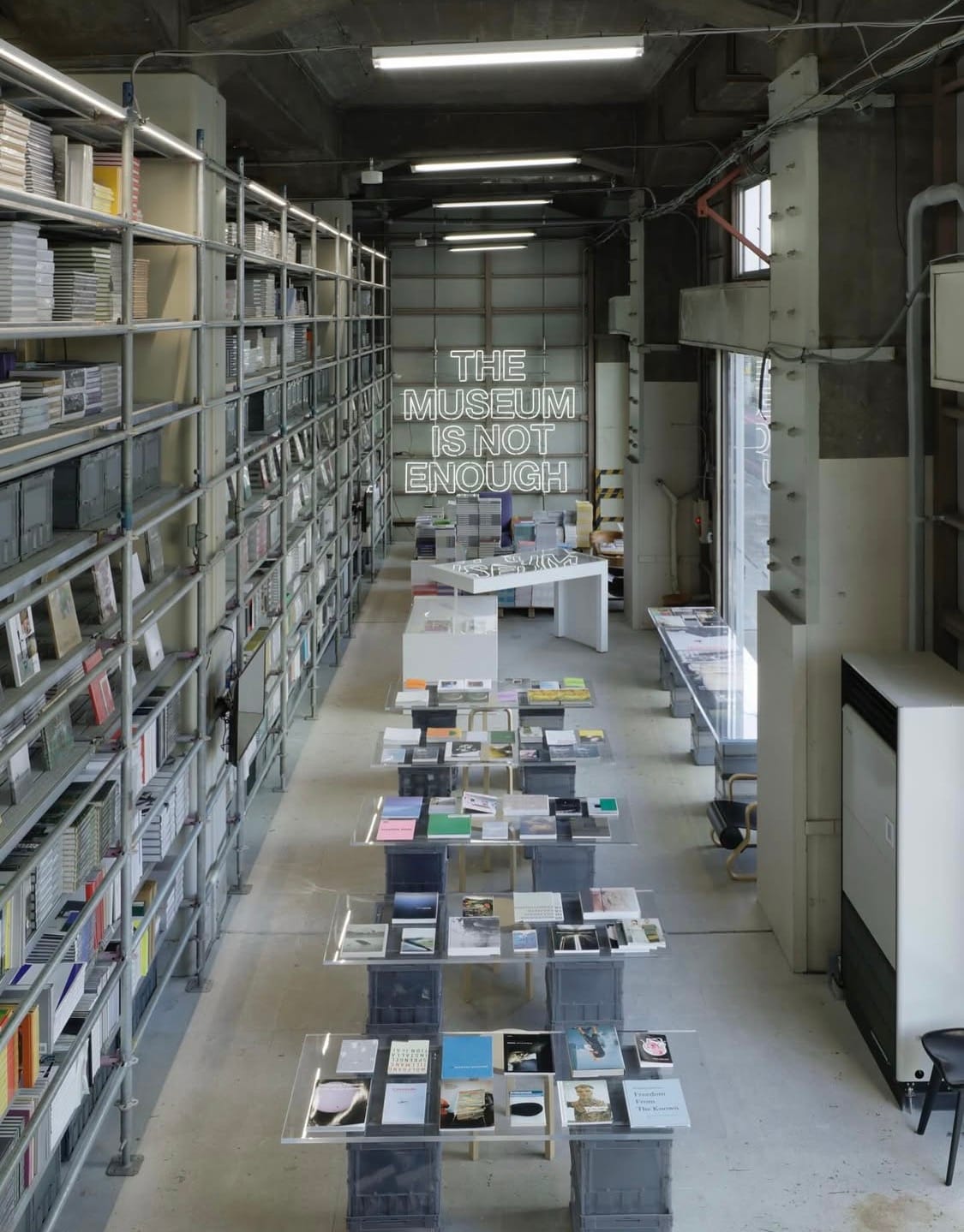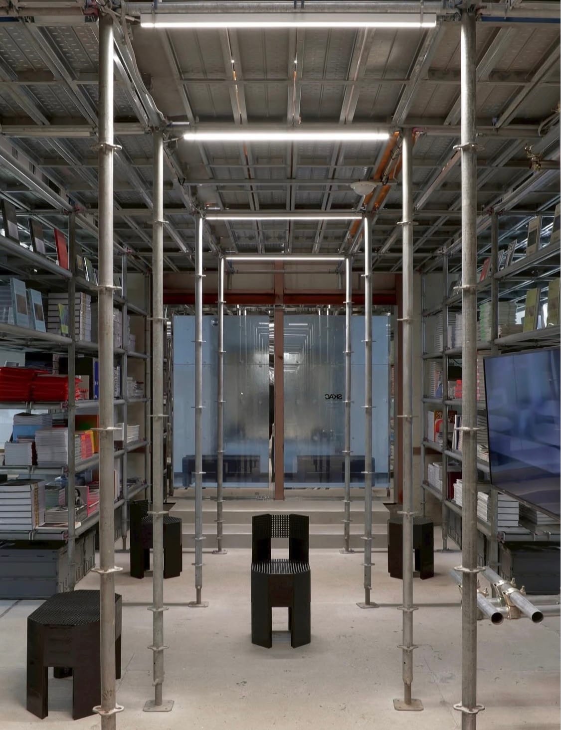 이 차가운 구조물을 생동감 있게 만드는 것은 그 사이사이를 밀도 있게 채운 수천 장의 종이와 오래된 LP들입니다. SKAC은 다양한 파트너들과 함께 공간의 콘텐츠를 만들어 나가는데, 그중 하나가 세계 각국의 아트북을 큐레이션하는 ‘twelvebooks’입니다. 덕분에 방문객들은 평소 접하기 힘든 희귀 예술 서적들 사이를 유영하며 자신만의 시간을 보냅니다.