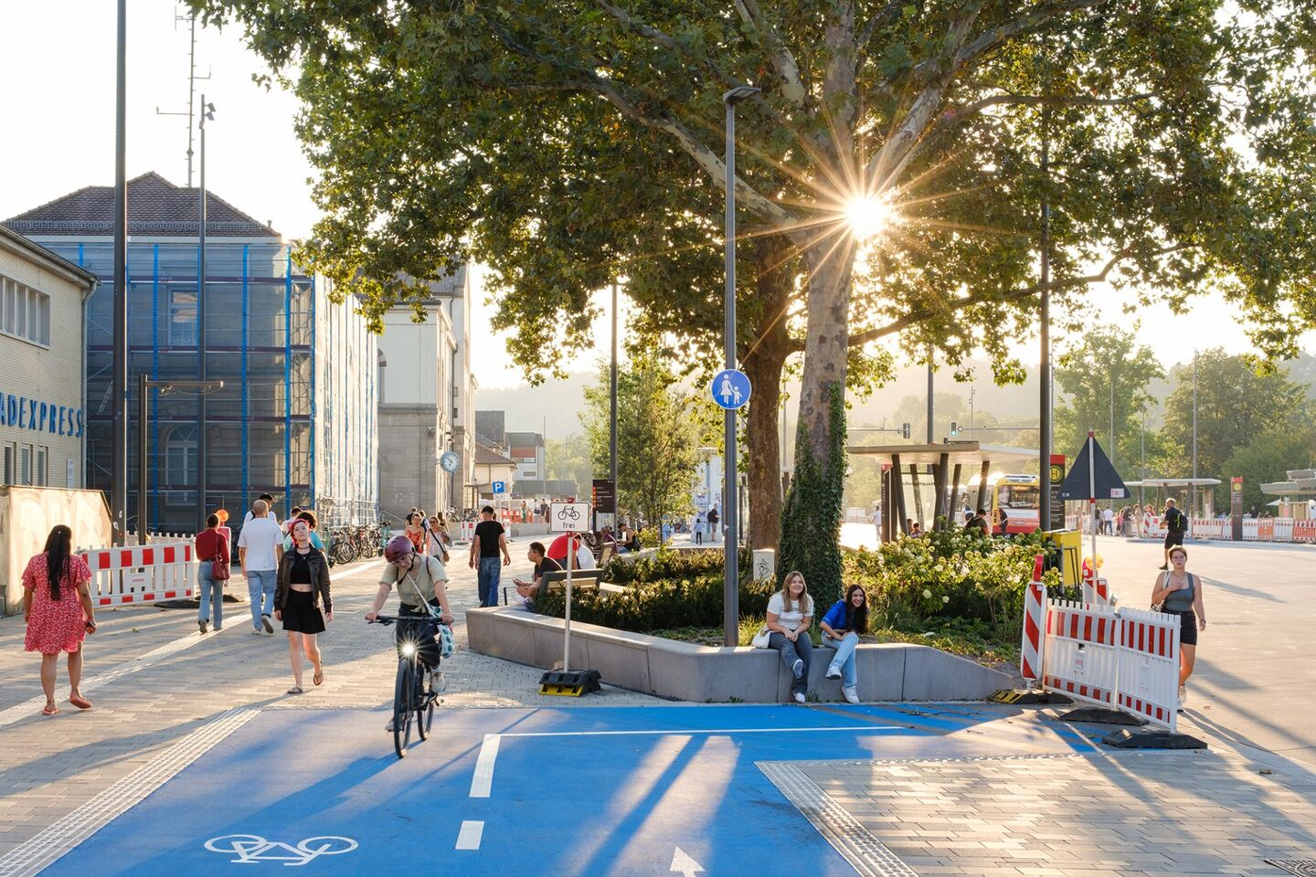 가장 대표적인 변화는 2023년 리모델링을 마친 중앙 버스 터미널(ZOB)과 중앙역 앞 광장입니다. 1960년대에 지어져 낡고 불편했던 버스 터미널은 완전한 무장애 공간으로 탈바꿈했습니다. 버스 정류장의 보도 높이를 저상 버스 입구와 딱 맞게 높여서, 휠체어나 유모차가 다른 사람의 도움 없이도 혼자서 안전하게 탈 수 있게 설계했습니다. 터미널 바닥 전체에는 시각 장애인을 위한 유도 블록을 깔고, 버스 도착 정보를 음성으로 안내하는 시스템도 도입했습니다.