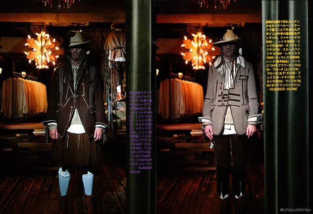 1996년, 네펜데스에서의 경험을 살려 론칭한 넘버나인에 미야시타 본인의 취향이 노골적으로 투영된 것 또한 이러한 시대적 흐름의 반영이었을 것입니다. 네펜데스가 아메리칸 빈티지를 베이스로 한다는 점에서 우라하라주쿠와는 결이 달랐으나, 창업주인 시미즈 본인이 서브컬처에 깊은 관심을 두었던 점도 영향을 미쳤습니다. 당시 미야시타의 나이는 스물셋으로, 정규 패션 교육을 받지 않은 채 거리에서 패션을 배운 청년이었습니다.