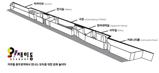 거대한 담론들이 충돌하는 충무로의 지상과는 대조적으로, 충무로역 지하 1층에는 20년 넘게 자리를 지켜온 작은 문화 사랑방 ‘오!재미동’이 있습니다. 2004년 문 연 이곳은 누구나 영화를 감상할 수 있는 극장이자 아카이브이며, 신진 작가들의 전시실이자 영상 제작을 돕는 교육의 장이기도 합니다. 화려한 멀티플렉스나 거창한 센터는 아니지만, 영화를 사랑하는 시민들과 독립 영화인들에게 오!재미동은 영화적 일상을 가능케 했던 소중한 아지트였습니다.