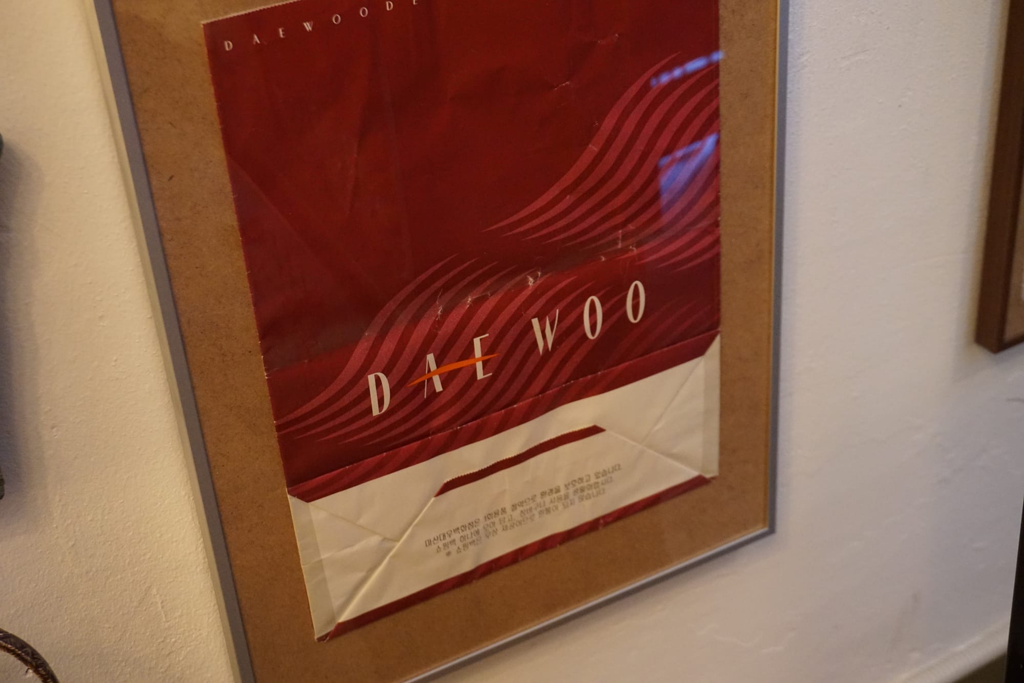 공간 안으로 들어서면 벽면을 채운 수많은 액자가 먼저 눈에 들어옵니다. 마산의 상징적인 빵집인 고려당 쇼핑백부터 한때 국내 섬유 원사 생산의 큰 축이었던 한일합섬의 광고 전단까지 도시의 기억을 품은 조각들이 걸려 있습니다. 흔히 수집가의 공간이라고 하면 물건이 천장까지 산처럼 쌓인 풍경을 떠올리게 마련이지만 이곳은 물건 하나도 허투루 두지 않습니다.