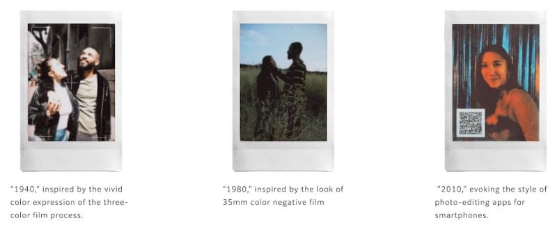 최신작인 인스탁스 미니 에보 시네마는 ‘미학적 퇴행’을 메인 테마로 내세웁니다. 과거 시네마 캠코더의 폼팩터를 빌려온 이 모델은 한 손에 감기는 투박한 그립을 통해 사용자의 태도를 기록이 아닌 ‘연출’의 시대로 되돌려 놓습니다. 특히 1930년부터 2020년까지, 100년의 세월을 아우르는 10가지 시대별 필터는 사용자가 특정 시대의 분위기와 정서를 선택해 사진 또는 영상으로 소유할 수 있게 합니다.