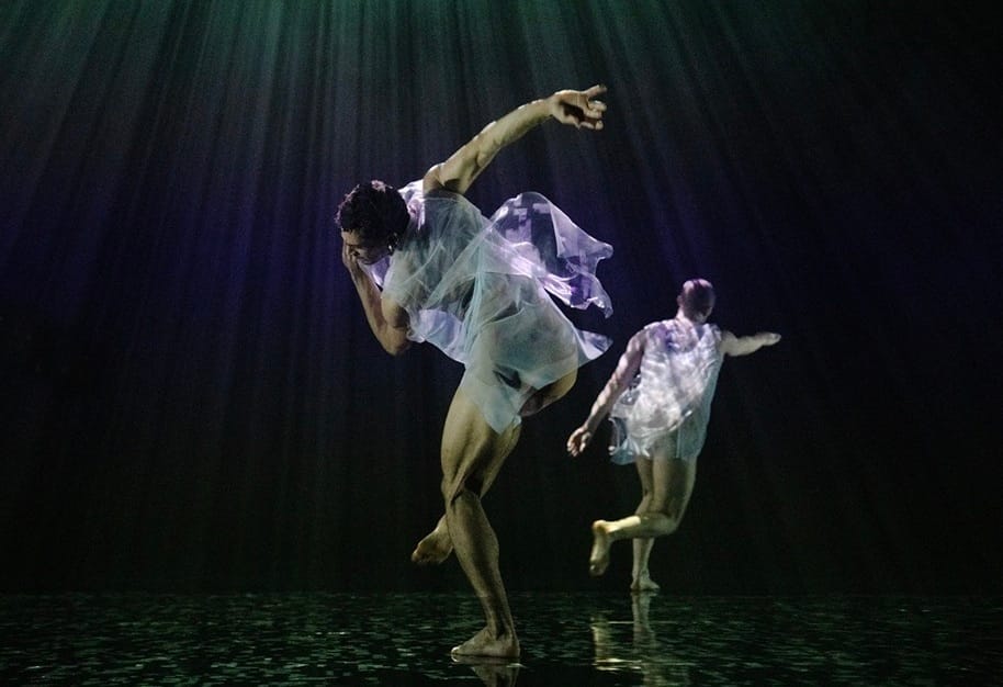<딥스타리아>는 안무가이자 연출가인 웨인 맥그리거(Wayne McGregor)가 심해와 우주의 암흑에서 이미지를 가져와 구성한 2024년 작품입니다. 맥그리거는 제목을 심해 해파리 속명인 ‘딥스타리아(Deepstaria)’에서 가져왔지만, 해파리 그 자체가 아니라 공허와 존재의 감각을 다룹니다.