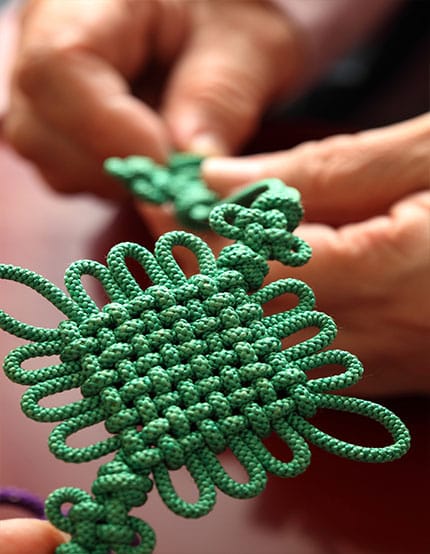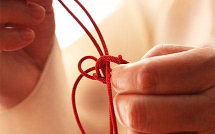 매듭은 첫 고리인 ‘코’에서 시작된다. 장인은 이 코를 꽉 쥐지 않는다. 여유로운 코가 있어야만 다음 단계로 나아갈 수 있기 때문이다. ‘매듭’의 어원인 ‘맺다’는 열매를 맺듯 서서히 익어 완성되는 과정을 뜻한다. 시작은 언제나 느슨해야 한다.