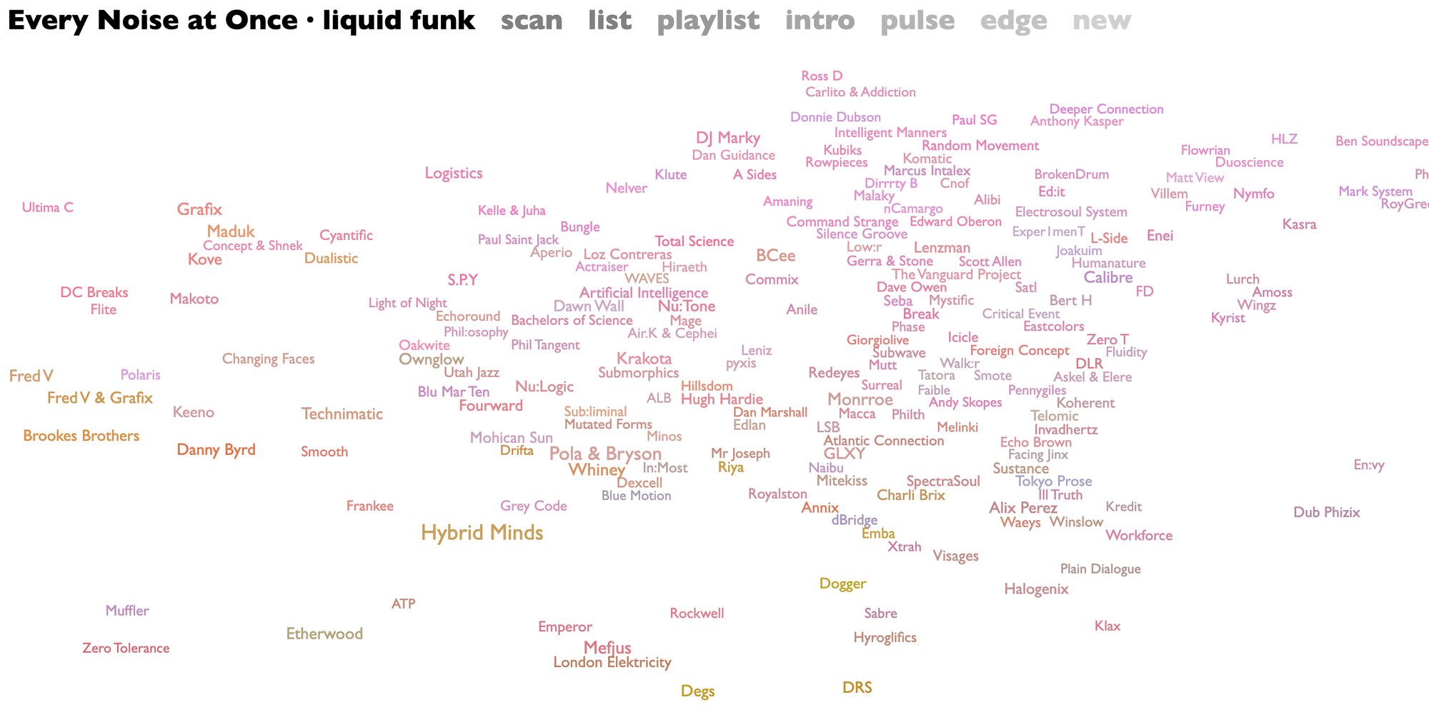 웹사이트는 각 장르의 특성을 고려하여 산포도 형태로 구성되어 있는데요. 왼쪽에서 오른쪽으로 갈수록 몽환적인 분위기에서 경쾌한 음악으로, 아래에서 위로 올라갈수록 어쿠스틱한 음악에서 기계적인 음악들로 배치되어 있죠. 장르명을 클릭하면 대표곡이 재생되며, 화살표 버튼을 클릭하면 해당 장르에 속하는 아티스트를 볼 수 있습니다. 스크롤을 내리면 ‘Korean pop’, ‘British indie rock’과 같은 익숙한 장르부터 ‘Abstractro’, ‘Russian drill’, ‘Nadaswaram’ 등 한 번도 들어보지 못한 이름들이 끝없이 나타납니다. 무한히 펼쳐지는 장르 사이를 자유롭게 떠돌며 무궁무진한 세계를 거닐어 보세요.