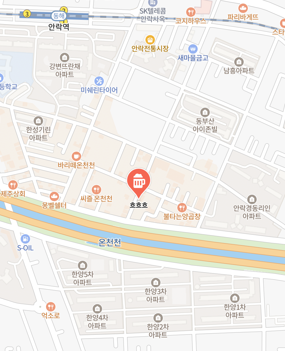 마지막으로 소개할 곳은 안락동에 위치한 ‘ㅎㅎㅎ(흐흐흐)’입니다. 오시게와 마찬가지로 온천천을 곁에 두고 자리한 이곳은, 자체 양조 맥주는 물론 다른 양조장과의 협업으로 탄생한 시즈널 맥주, 그리고 국내외 다양한 수제 맥주를 한자리에서 경험할 수 있는 탭룸 스타일로 운영되고 있습니다.